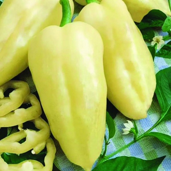 Magyar nemesítésû, korai, szép, fehér színû paprika. Közepes tenyészidejû, nagy termõképességû, alacsony növekedésû paprika. Klasszikus tölteni való paprikákat nevel, kellemes ízzel. Stabil, magas terméshozamú fehérpaprika, amely, jól tûri az extenzív termesztési körülményeket. Lefelé álló termése vállas, hegyes végû, 90-120 g átlagtömegû. A sárga termés késõbb narancssárgára érik. Termése nagy, vastag héjú, ízletes. Kiváló friss fogyasztásra és tölteni valónak is.